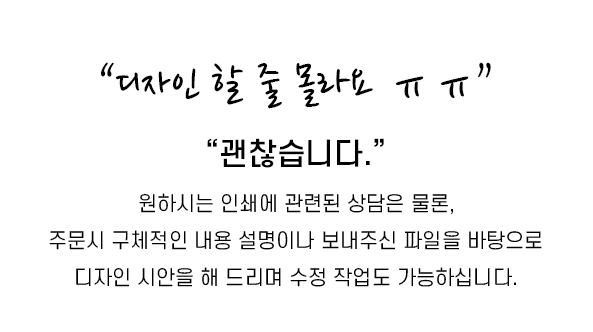 < 제작 공정시 확인 - 인쇄 공정시 확인 - 배송 전 확인 > 이와 같은 제품 수량 검토 단계를 거치므로 수량 부족 확률이 거의 없습니다.