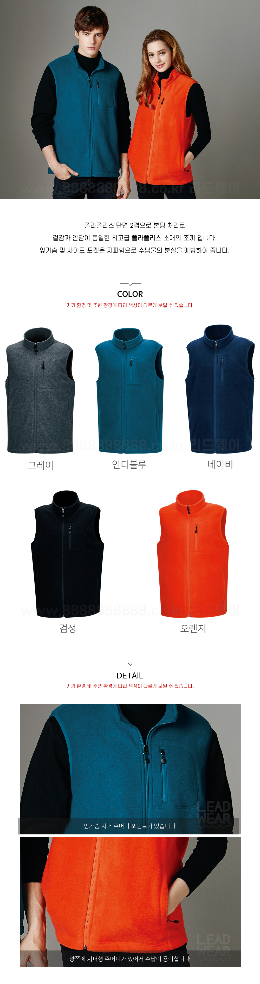 폴라폴리스 단면 2겹 본딩처리, 겉감과 안감이 동일한 최고급 폴라폴리스 소재의 조끼 입니다.