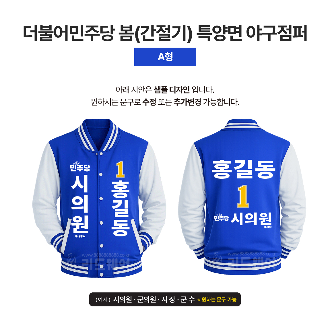 더불어민주당 봄(간절기) 특양면 야구점퍼 A형A형