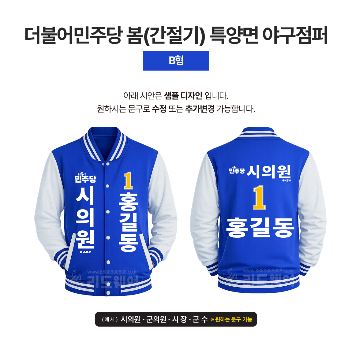 더불어민주당 봄(간절기) 특양면 야구점퍼 B형B형