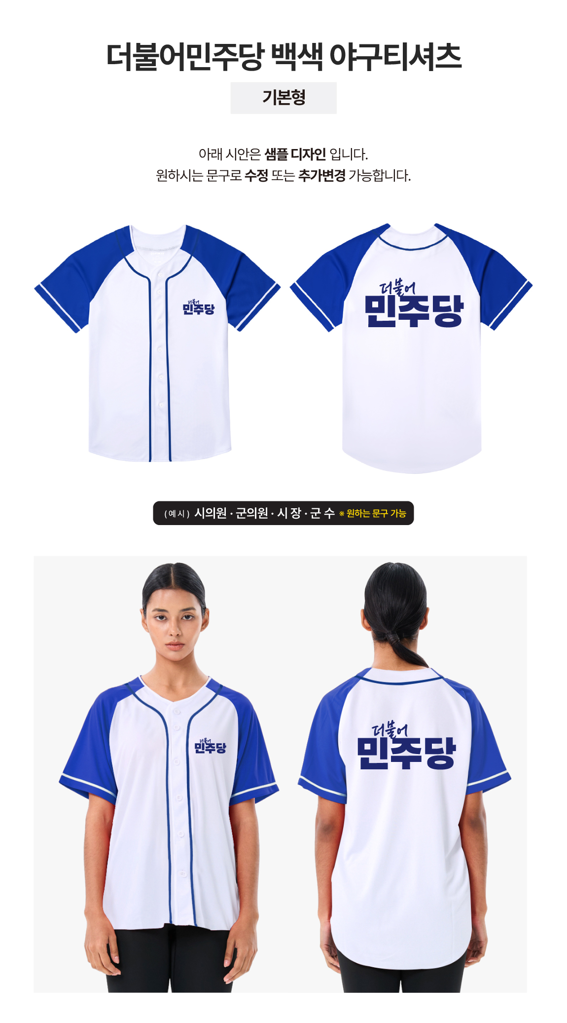 더불어민주당 백색 야구티셔츠 기본형기본형