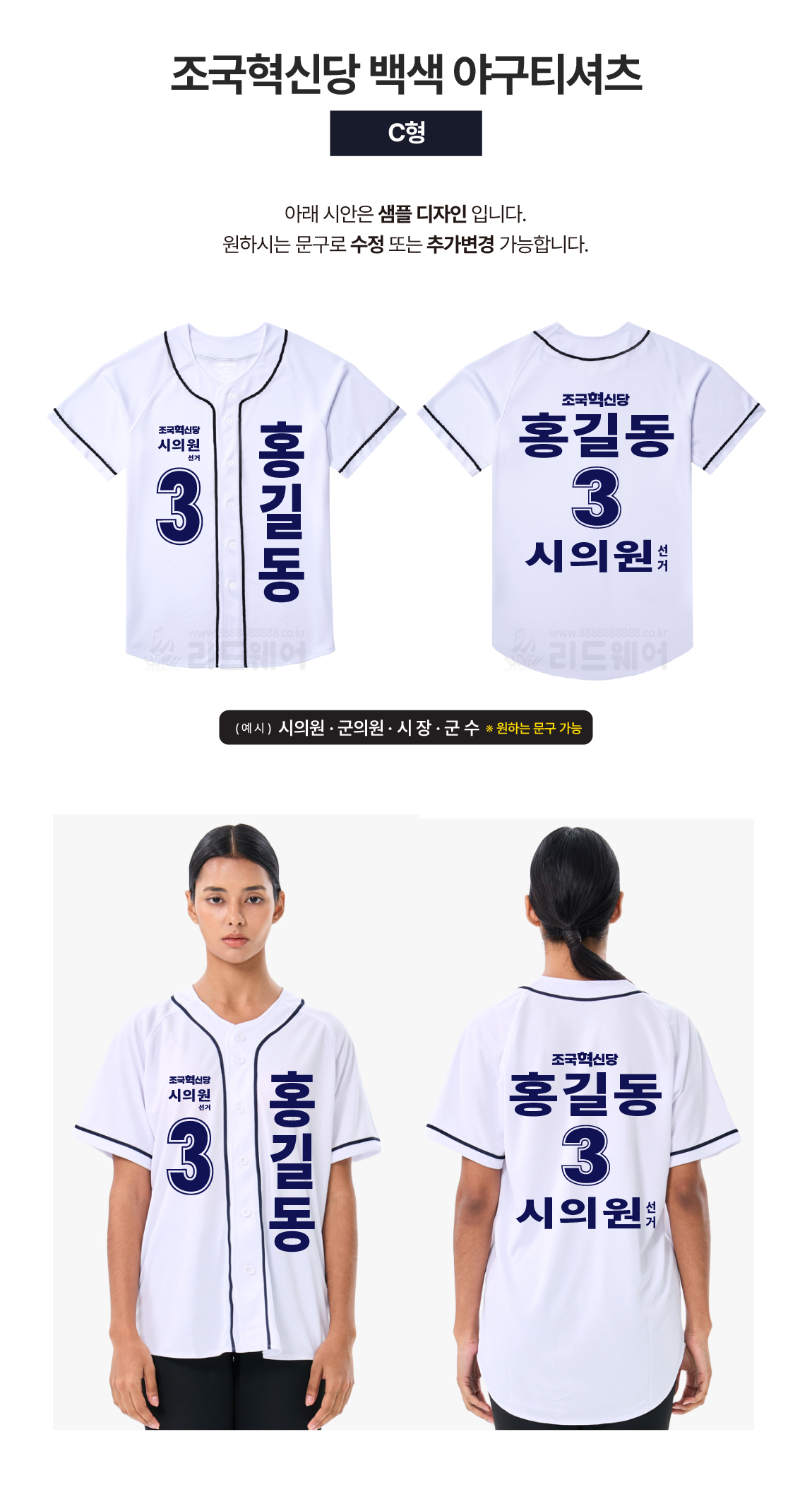 조국혁신당 백색 야구티셔츠 C형C형