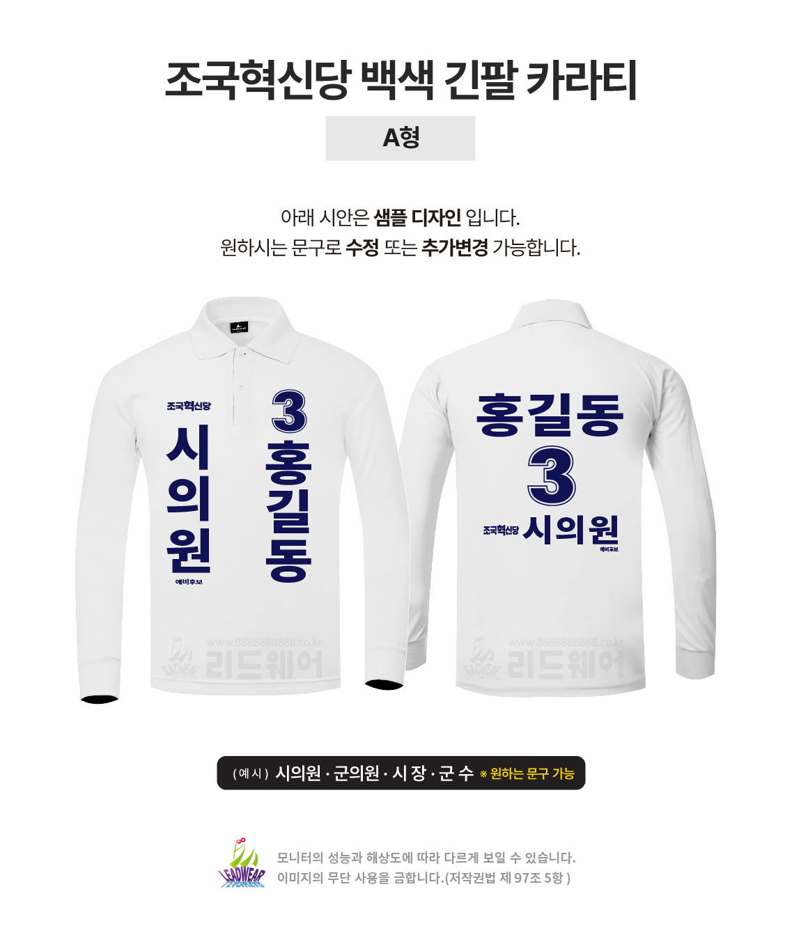 조국혁신당 백색긴팔카라티 A형A형
