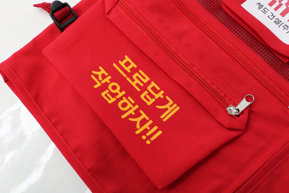 *주의사항* 오른쪽 주머니, 뒷목에 흰 박스 디자인은 실사(필름) 인쇄입니다. 나머지 문구 인쇄는 모두 날염 인쇄입니다.