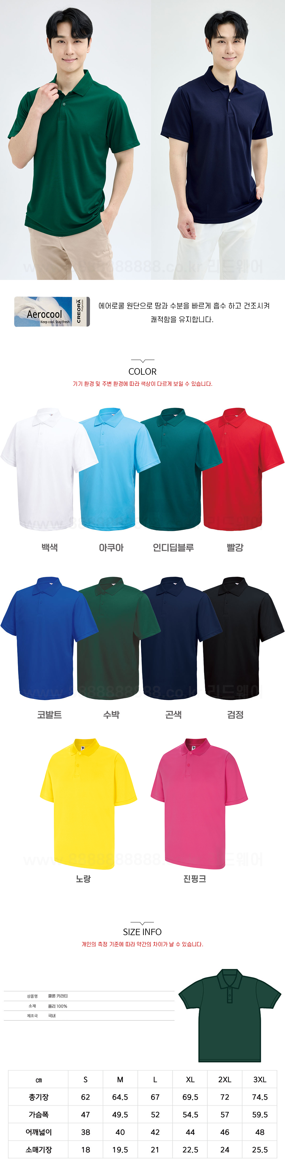 | 소재 | 폴리에스테르 100% (에어로쿨) |