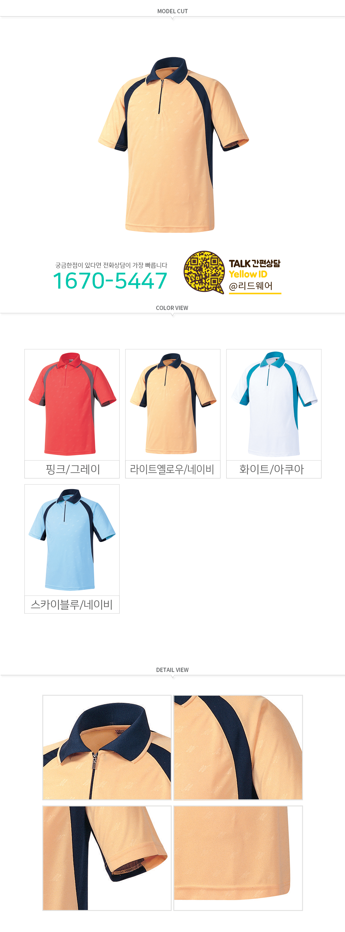 LPA168 - 쿨론 나그랑 배색 지퍼 반팔핑크/그레이