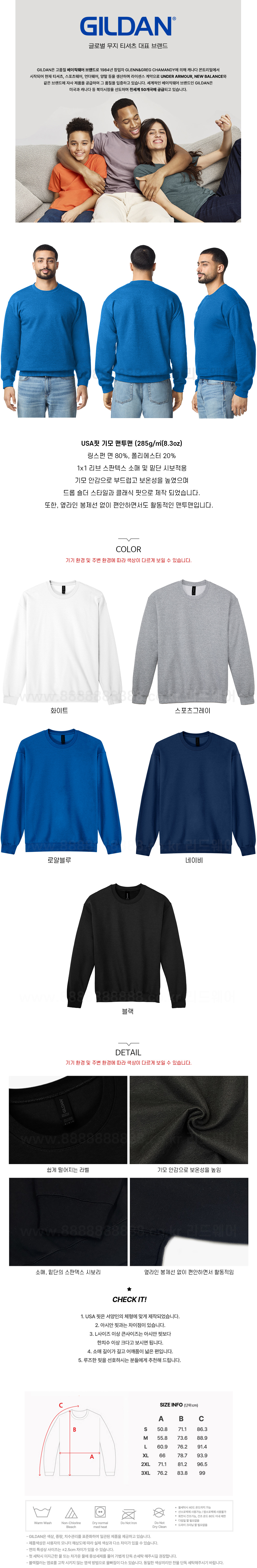 | 소재 | 285g/㎡ (8.4oz,안감기모) 링스펀 면 80%, 폴리에스트 20% |