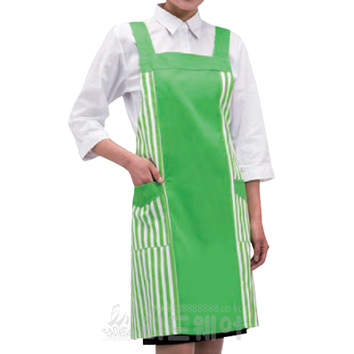 T/C 20수 원단에 스트라이프 포인트가 있는 H형 앞치마 입니다.