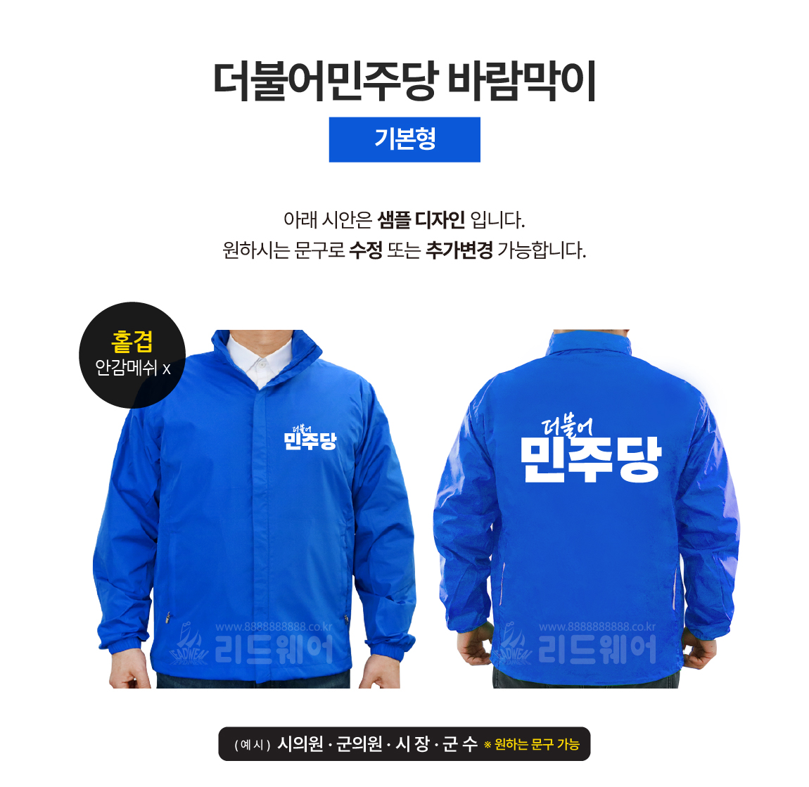 (1시이전 주문) 더불어민주당 바람막이 2 기본형기본형