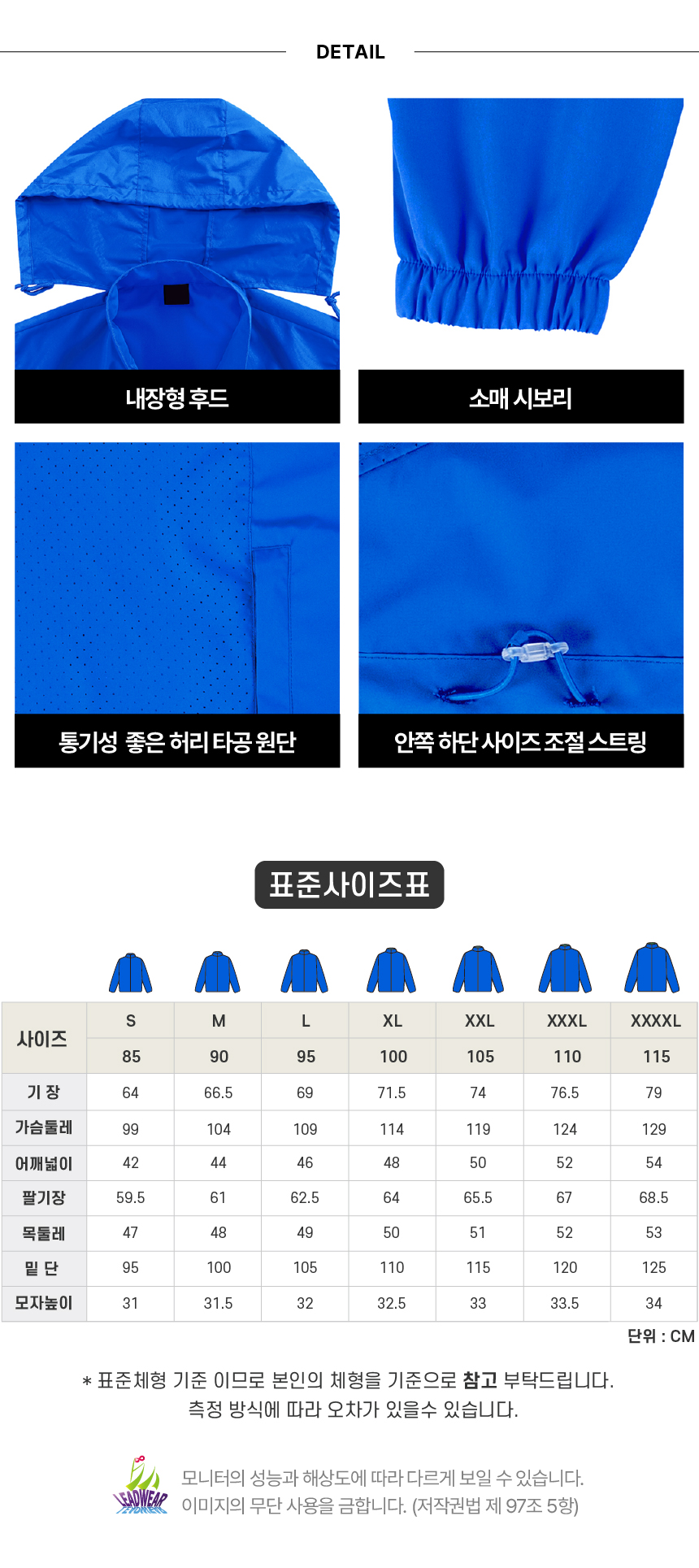 고급 듀스포 원단으로 생활방수가 가능한 바람막이 입니다.