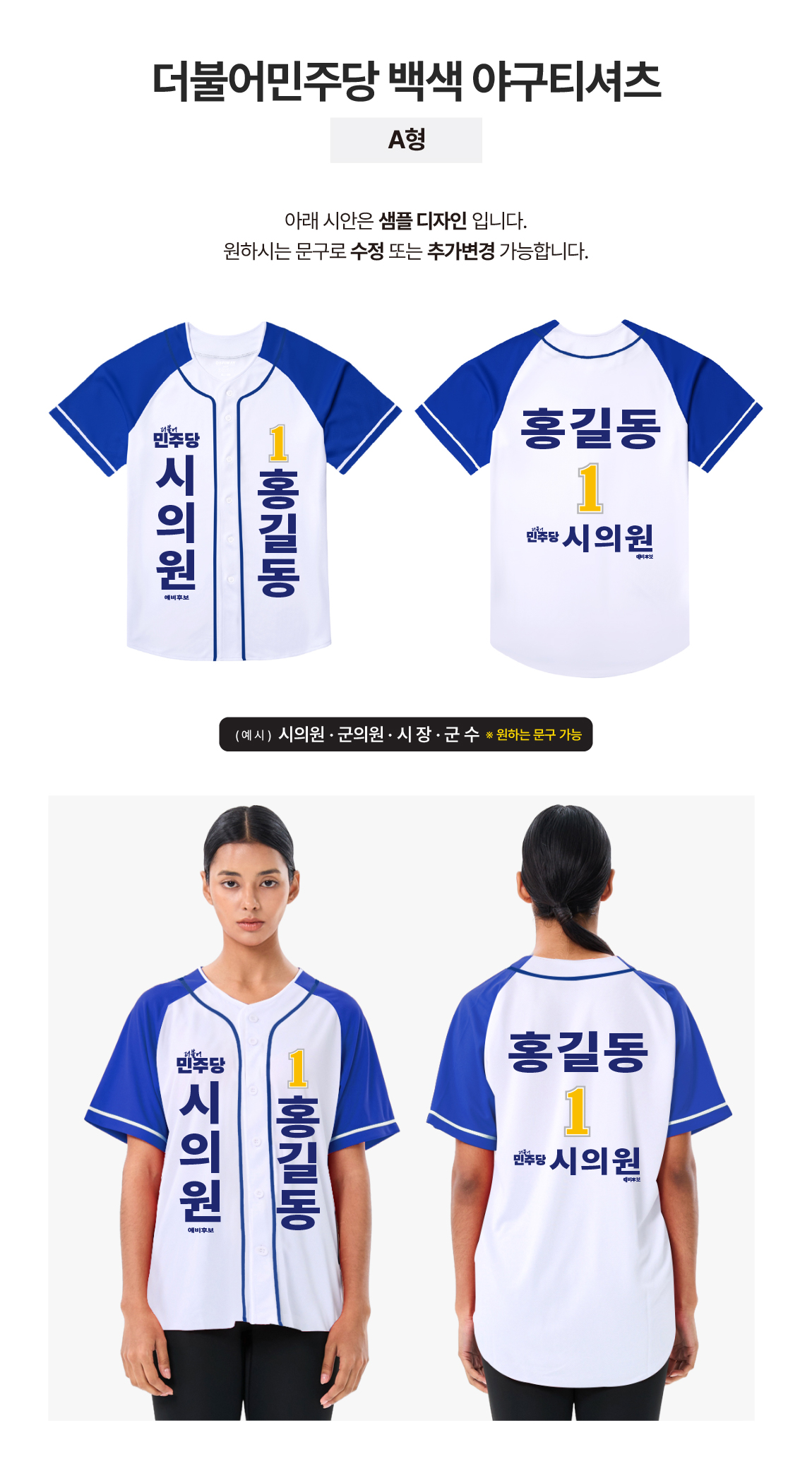 더불어민주당 백색 야구티셔츠 A형A형