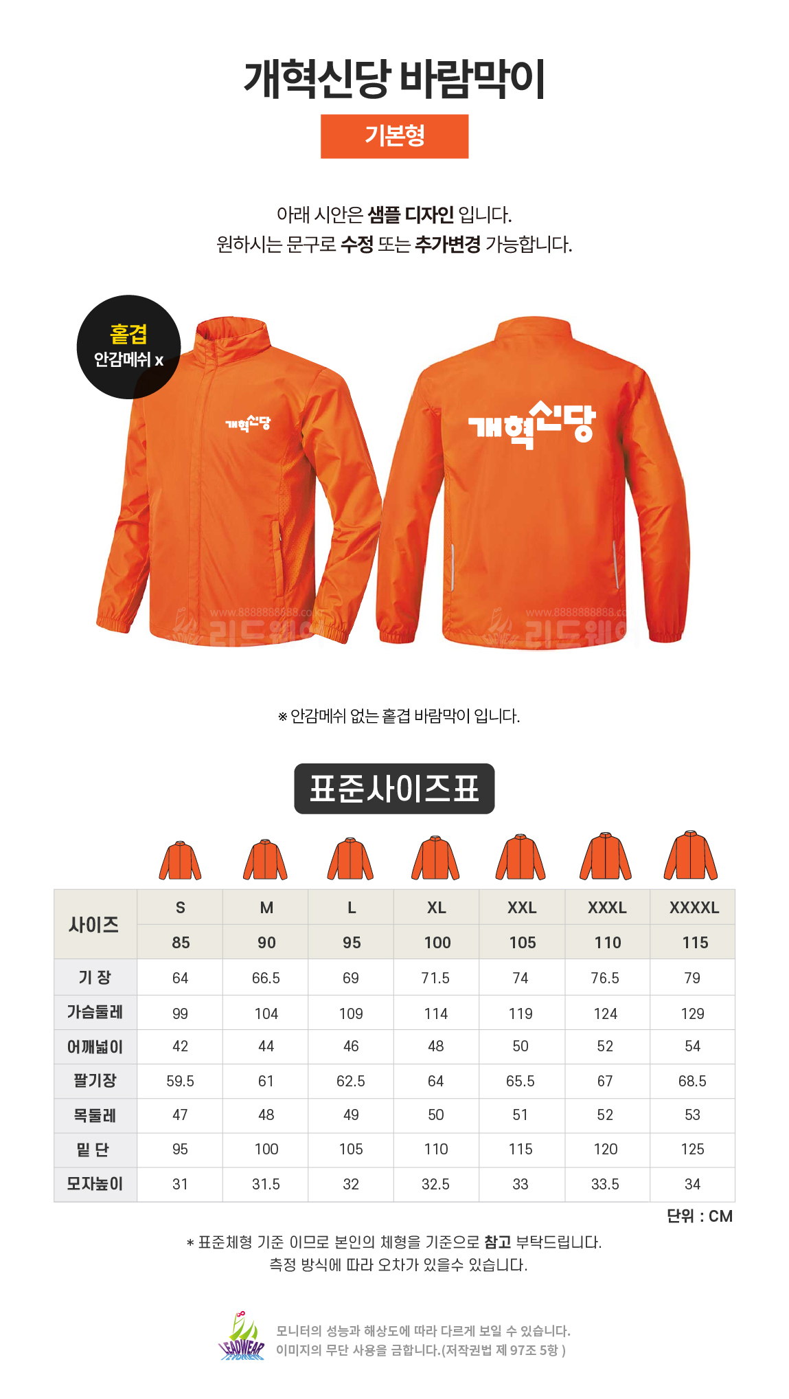 개혁신당 바람막이 기본형기본형